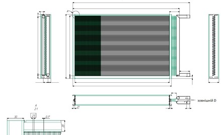 Нижче наведена типова схема теплообмінника. За необхідності вкажіть габарити та інші параметри відповідно до цієї схеми.